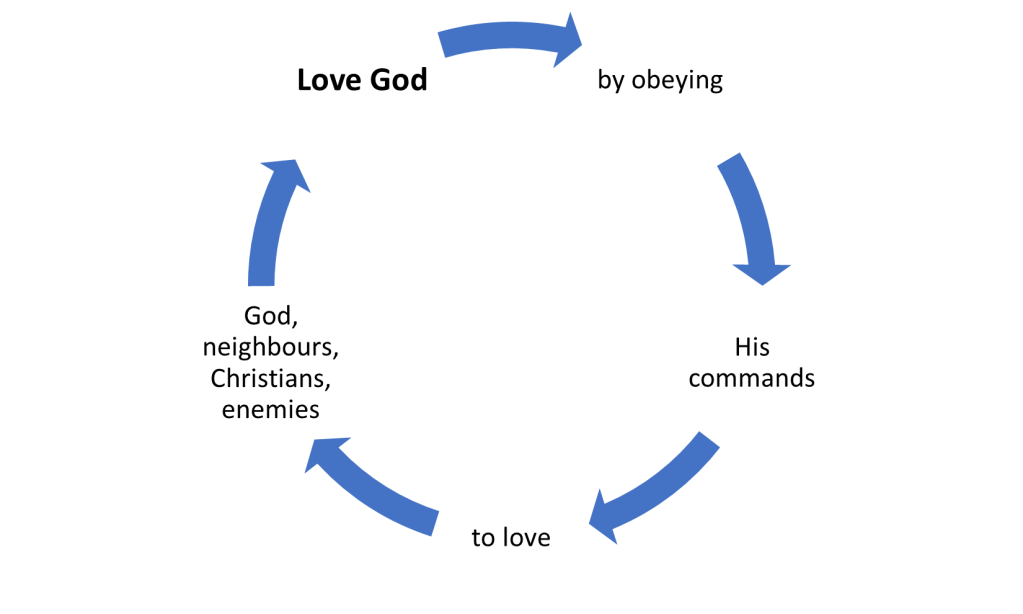 | Jn 14 | 10 | If you obey my commands, you will remain in my love, just as I have obeyed my Father’s commands and remain in his love. |